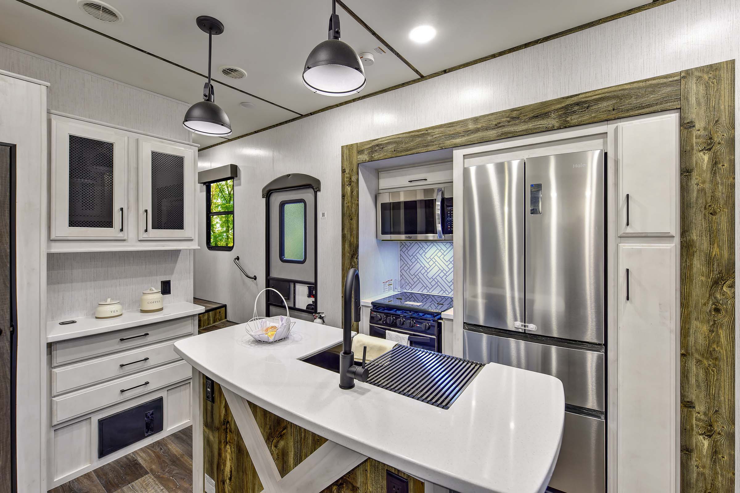 Built for adventurers with big plans, this road-ready beast is tough and dependable. So if your RV dream includes longer road trips, mountainous terrain or a "go anywhere, do anything" attitude, this is your rig. You'll feel at home with a spacious interior and exceptional storage areas. And a 6-point hydraulic leveling system offers 60,000 lbs. of lifting strength.